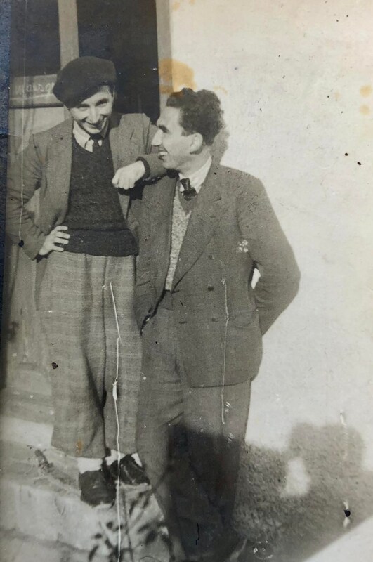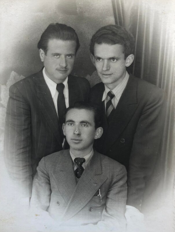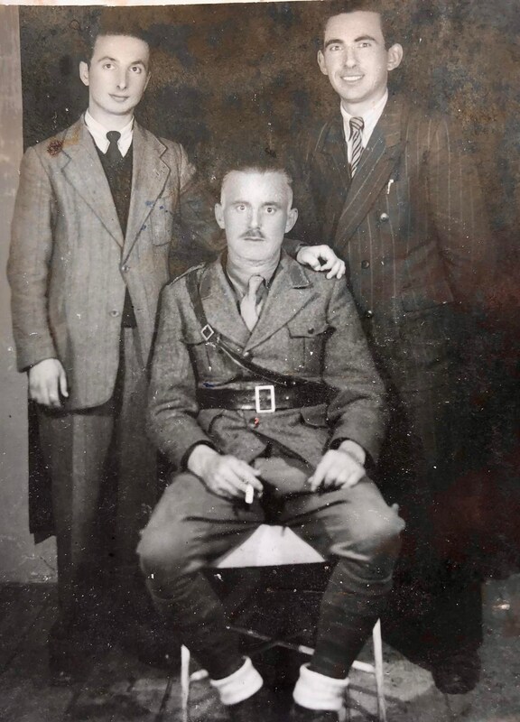 Reis Poshi me dy shokë mësues të shkollës "Hasan Prishtina " , majtas lart Petraq Nase tjetri Mujë Sokoli, im atë ulur . 16 prill 1943 ora 5 mbasdite në Prishtinë.